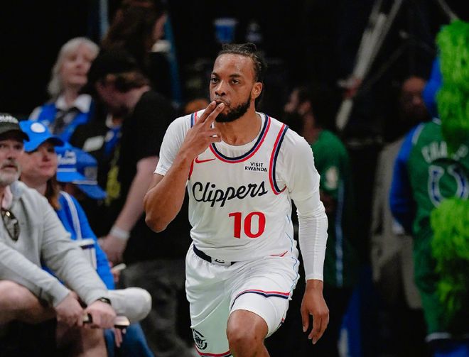 快船過去4場遭遇4連敗,獨行俠過去兩場連輸鵜鶘與老鷹遭遇2連敗,本賽季前兩次交鋒雙方各取一勝。本場快船缺少比爾、馬瑟林,獨行俠缺少歐文、萊夫利與馬丁。首節(jié)雙方開啟對攻模式,兩隊均是單節(jié)轟下30+得分,快船首節(jié)19中12超過6成準星,其中三分6中3,加蘭5中4得到10分。獨行俠25中15達到6成準星,其中三分14中7極為給力,克萊三分4中4得到12分,首節(jié)比賽結(jié)束快船32-42落后獨行俠10分差距。