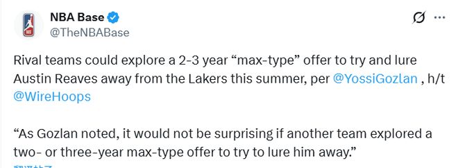 不算標準25%檔頂薪,但差距不大,足夠讓其他球隊開出這種合同,試圖把他從湖人挖走。比如快船、老鷹、公牛這類球隊,有可能為他開出兩年或三年頂薪來搶人,有點像2023年火箭從猛龍簽下范弗利特。