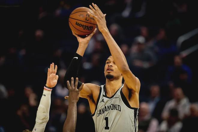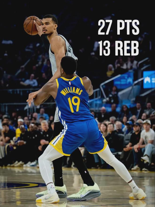本賽季至今,馬刺已經(jīng)8次在客場凈勝對手至少25分,已經(jīng)追平NBA歷史紀(jì)錄。如果今天馬刺贏勇士25分以上,將打破歷史紀(jì)錄。說回比賽,文班一開場火力全開,率領(lǐng)馬刺打出17-3的攻擊波。首節(jié)剛打4分鐘,比賽直接花了!
