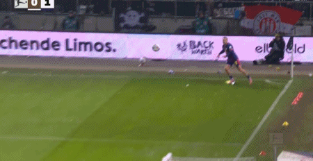 第86分鐘,萊比錫左路壓上,戈米斯禁區(qū)邊上和迪奧曼德一個(gè)撞墻配合后內(nèi)切突入禁區(qū)右腳大力兜射,皮球稍稍高出橫梁出了底線。補(bǔ)時(shí)階段,圣保利前場(chǎng)右側(cè)邊線球,安藤智哉將球往禁區(qū)擲出,連續(xù)的傳遞后,卡爾斯突入禁區(qū)接球,勞姆回防直接將卡爾斯鏟倒,主裁吹罰了點(diǎn)球??査褂H自操刀主罰一蹴而就,圣保利1:1絕平萊比錫。
