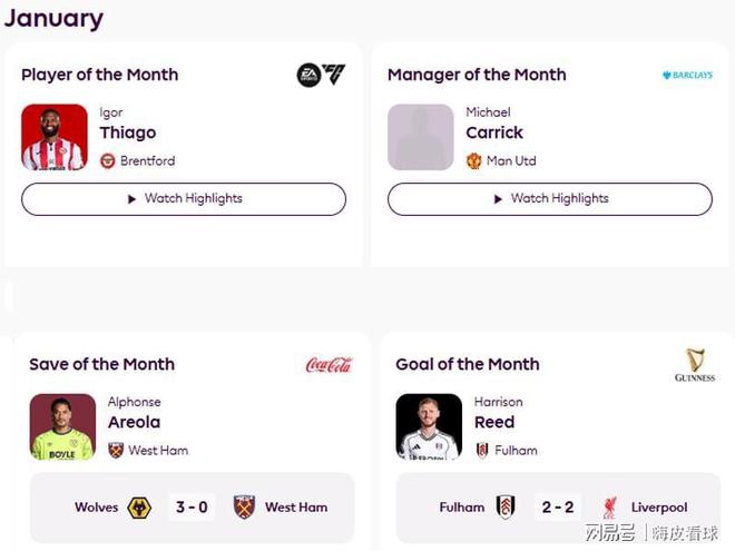 整個1月,曼聯(lián)有5場比賽,分別由阿莫林、弗萊徹和卡里克三人帶隊,卡里克僅用其中2場就獲得最佳,實在難以置信。同樣是新帥的羅塞尼爾贏下3場落選。值得一提的,落選的伊勞拉,在過去6場聯(lián)賽中,帶領伯恩茅斯,取得跟曼聯(lián)均為4勝2平的成績,是英超得分最高的兩隊。