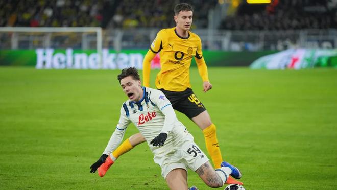 2025/26賽季,雷賈尼迎來了職業(yè)生涯的爆發(fā)期,用三周時(shí)間完成了職業(yè)生涯的“三級(jí)跳”。德甲第21輪,多特客場(chǎng)挑戰(zhàn)沃爾夫斯堡,他在第90分鐘替補(bǔ)登場(chǎng),完成德甲首秀;一周后的德甲第22輪,多特4-0大勝美因茨,他在中場(chǎng)休息時(shí)替換聚勒出場(chǎng),打滿下半場(chǎng)并交出穩(wěn)健表現(xiàn);隨后因施洛特貝克、聚勒、埃姆雷·詹等多名后防主力傷缺,雷賈尼迎來職業(yè)生涯首次首發(fā),而這次首發(fā)更是在歐冠淘汰賽附加賽首回合對(duì)陣亞特蘭大的關(guān)鍵戰(zhàn)役中。面對(duì)強(qiáng)敵,這位18歲小將頂住壓力完成歐冠首秀,交出7.12的亮眼評(píng)分,展現(xiàn)出超越年齡的冷靜與成熟。短短數(shù)月,雷賈尼便完成了從青年隊(duì)到歐冠賽場(chǎng)的跨越,這樣的適應(yīng)能力在同年齡段球員中極為罕見。